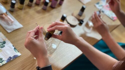 講座では、精油についての説明を聞いた上で香りブレンドのコツなども聞けます。