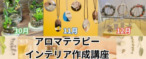 10月・11月・12月の講座ではアロマ(精油)インテリアを作成できる内容になっています。