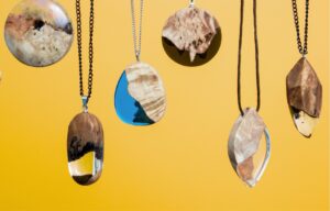 身につけても飾ってもオシャレなアロマアクセサリー作製(現時点ではウッドレジンのアロマネックレス予定)。